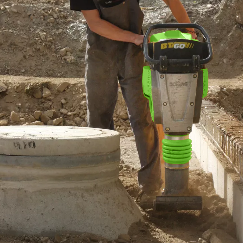Alquiler de pisones o placas vibratorias de calidad para la compactación de diferentes tipos de suelos y superficies en proyectos de construcción. Especialmente idóneos para obtener una base sólida y estable en cualquier obra de construcción. Están diseñados para brindar un rendimiento confiable y eficiente, y pueden utilizarse en diferentes tipos de superficies, como asfalto, tierra y gravilla.