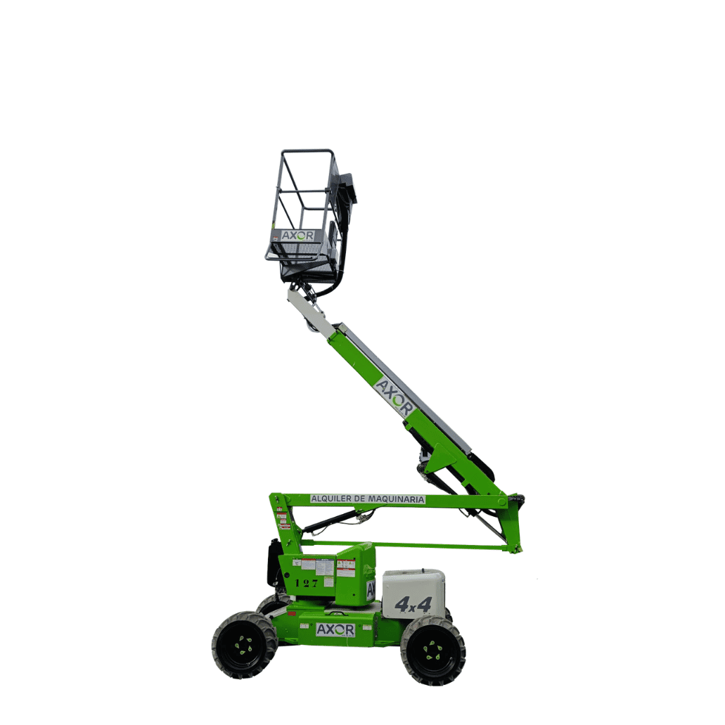 Disponemos de una plataforma articulada diesel con una altura máxima de 12 metros, perfecta para trabajos en exteriores que requieren movilidad y versatilidad en terrenos irregulares. Además, su capacidad de carga y su alcance horizontal permiten acceder a puntos de trabajo difíciles de alcanzar.