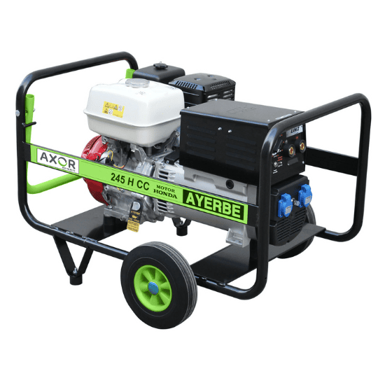 Ce groupe de soudure à l'arc fonctionne de manière autonome, grâce à l'électricité produite par une génératrice.